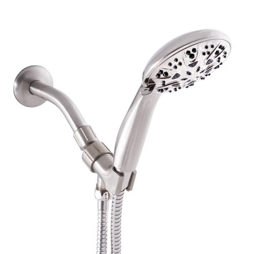 This Plumb Works® brushed nickel 5-Function handheld shower will compliment any bathroom decor.