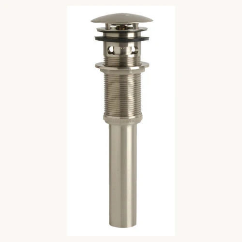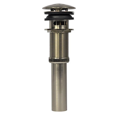 The Push-Button Drain for lavatory sinks with overflow gives a European flair to the sink. It has a universal design that fits many different sinks. The durable brass construction provides strength that will endure the rigors of everyday use.