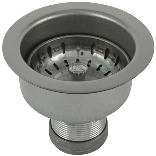 Professional grade stainless steel deep cup locking shell strainer with chrome plated brass shank. Spring post stainless basket with safety rolled edge. Fits stainless steel, cast iron and composite sinks. Includes all nuts and washers.
