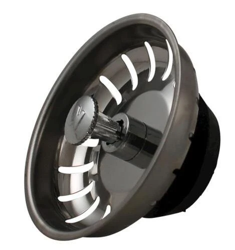 Universal fit kitchen sink basket strainer. Stainless Steel basket with Chrome Finish. Drop post style with tapered rubber stopper. Fits most kitchen sink basket assemblies.