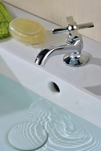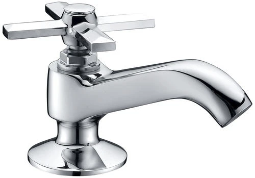 This traditional one-handle basin faucet has a polished chrome cross handle design for that vintage look. The brass body and stainless steel shank will function for years. The metal waterway meets the AB 1953 low lead standard. This Plumb Works faucet uses a ceramic disc cartridge for years of worry free use.