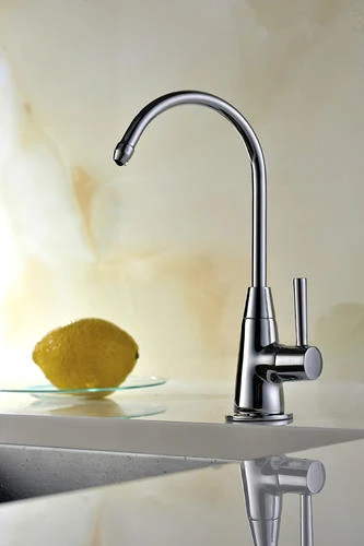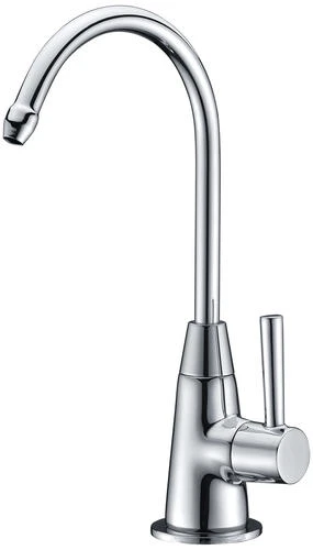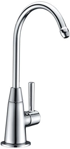 This one-handle drinking water faucet in a polished chrome finish is stylish and functional. It single hole installation and has a washer less cartridge for ease of use. The 6-5/16″ high and 4-1/16″ long spout will make it easy to fill up any glass or pitcher. This unit features a stylish zinc handle that will blend in with any decor. The metal waterway meets the AB 1953 low lead standard.