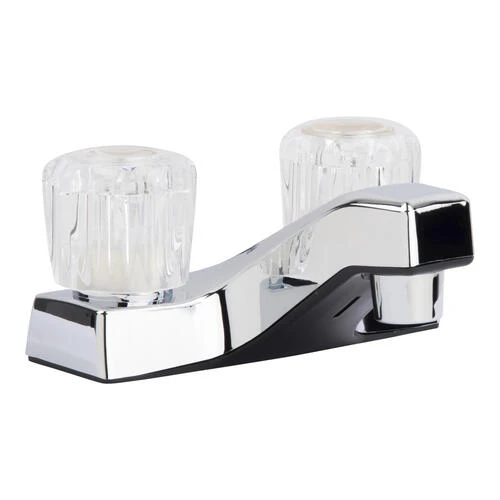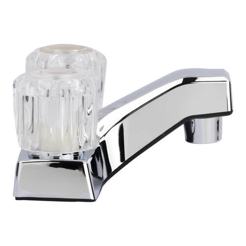 This Plumb Works® non-metallic two-handle bathroom faucet without pop-up drain in. chrome Finish will complement any bathroom Decor with style and functionality.