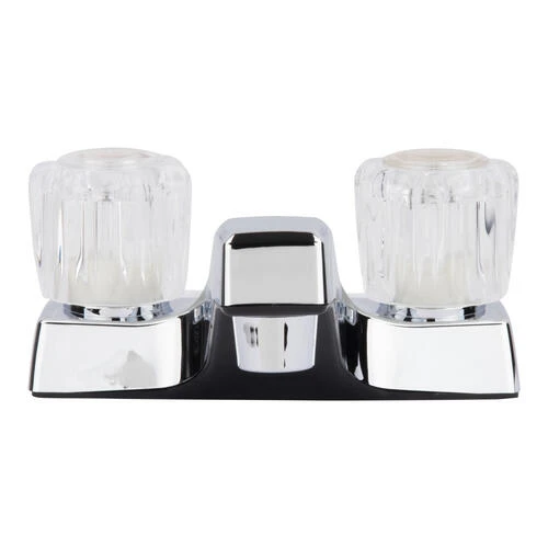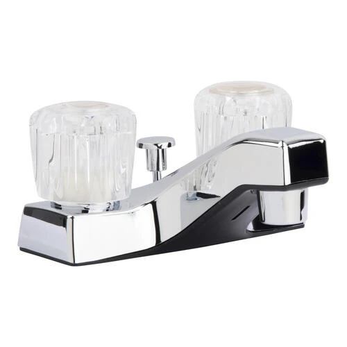 This Plumb Works® non-metallic two-handle bathroom faucet with pop-up drain in. chrome Finish will complement any bathroom Decor with style and functionality.